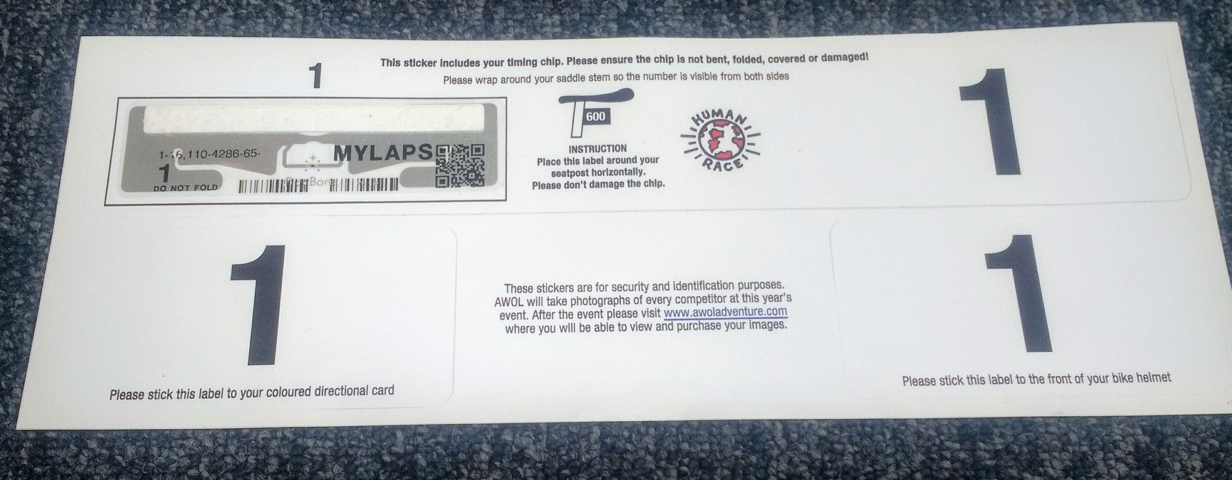 Timing Chip: Your timing chip is the small silver tag which is stuck onto the long rectangular seat post sticker. This is very important so please ensure the long sticker is securely attached to the seat post of your bike. If it is not attached correctly or damaged in anyway, your results may be affected.